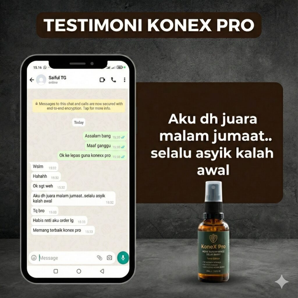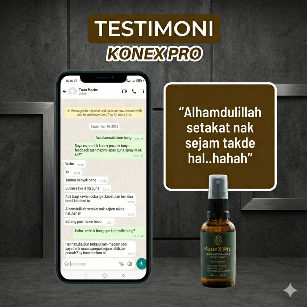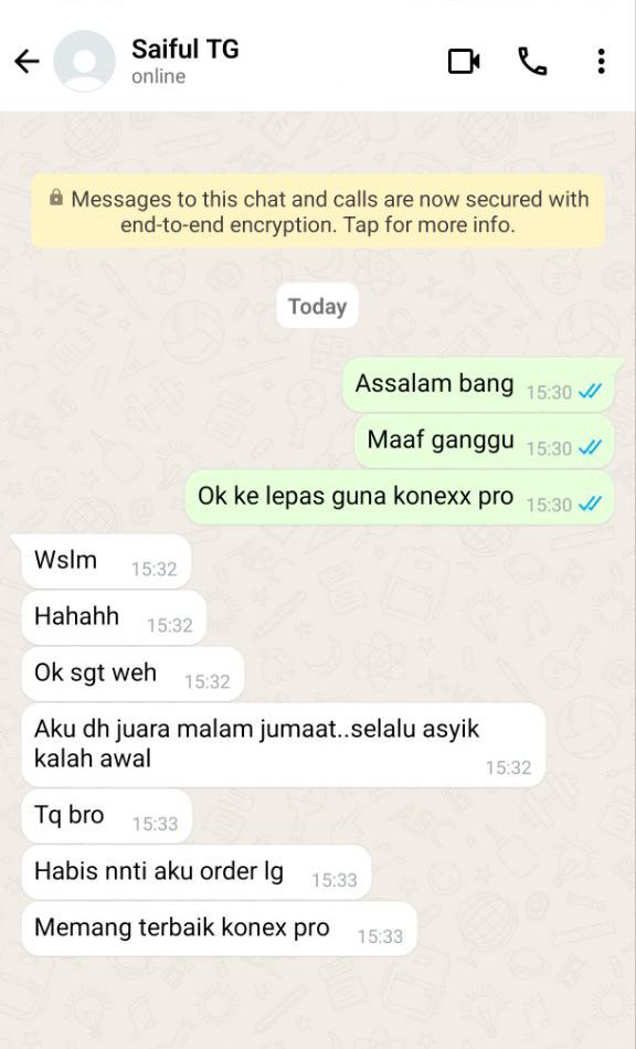 Jika produk kami tak membantu tingkatkan tahap kesihatan anda dalam masa 30 hari, kami akan pulangkan semula 100% wang anda. Anda dapat jaminan sekuat ini kerana kami ada bukti & pengalaman membantu ramai pengguna yang mempunyai masalah SAMA SEPERTI ANDA sebelum ini dan berjaya membuktikan Konex Pro ini memang dah terbukti berkesan.